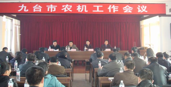 2009年3月6日,九台市农机局召开全系统工作会议,参加会议的有机关全体工作人员,事直三个事业单位领导班子全体成员,16个乡镇和2个办事处农机推广站站长和各单位受表彰的先进个人参加会议。会议由副局长王德惠主持。会议第一项由党办主任倪军宣读受表彰的农机校等四个先进单位和刘伟等23名先进个人名单;会议第二项由冯成河局长、王德惠副局长、王炳孚副局长和党办主任倪军向受表彰的先进单位和先进个人颁发了奖牌和证书及奖品;会议第三项由王炳孚副局长宣读了关于各单位年度工作考核办法;会议第四项冯成河局长在全系统农机工作会议上做了抓住机遇乘势而上努力开创我市农机化工作新局面的重要讲话。回顾过去了2008年所取得的成绩,布置了2009年农机化工作。
