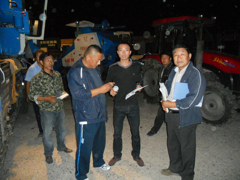 为确保党和政府农机购置补贴惠农政策的有效落实,农民能在秋收生产中能够及时使用新购农机,9月18日晚19时,洮北区农机管理总站工作人员不辞辛苦,在分管领导的带领下,在财政工作人员的大力配合下到白平公路农机市场为21户急于购机的农民连夜进行现场验收,农机监理部门人员同时到位,为购机农民进行落籍和办理证件,进行一站式服务,极大地方便了农民。农机总站程永航站长到现场进行督导巡视,与农民进行亲切交流。总站工作人员半月以来,放弃周六、周日和节假日的休息时间,加班加点的为农民办理农机购置补贴手续,深受农民的好评,达到了群众满意,树立洮北农机良好形象。