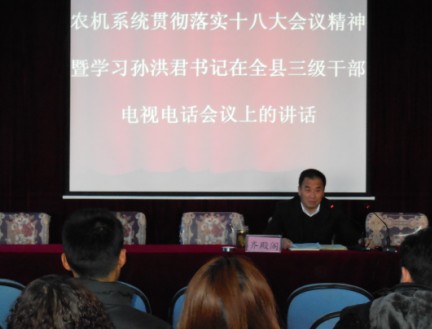 11月23日,县农机局组织全体干部职工召开学习十八大精神专题会议。会上,局党委书记、局长齐殿阁同志带领大家认真学习党的十八大精神,传达了全县三级干部电视电话会议精神,并安排部署下一阶段学习宣传贯彻十八大精神的相关工作。