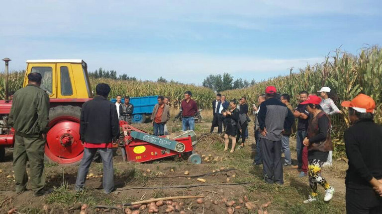 (祖成林)10月8日,洮北区马铃薯机械化收获现场会在平安镇红光召开。区农机总站及平安镇党委、政府相关负责同志、马铃薯收获机械生产厂家代表、互联网营销平台人员及周边农户等150余人参加了现场会。 在马铃薯机械化收获演示现场,对马铃薯杀秧机、收获机进行了作业演示,同时还演示播种、覆土等机械化作业环节,该系列收获机械可一次性完成播种、覆土、杀秧、还田、挖掘、清选、铺放等工序,且破皮、伤薯率低、明薯率高,安全高效,经济和社会效益十分显著,受到当地农民群众的高度关注和普遍欢迎。 采用全程机械化方式种植土豆的是平安镇红光村农民田云军,在2014年冬天参加区农机总站举办的生产经营型职业农民培训,到黑龙江省克山县参观考察大型土豆生产合作社,参观了先进土豆生产设备,看到小土豆如何做成大产业,使田云军深受触动,决心打破传统观念,实现科学种田。今年初,农机总站派出技术人员,实行点对点跟踪服务,使他的愿望得以实现,土豆从栽培到收获全程实现了机械化作业,一公顷地可省70个人工,大大节省劳动力,增加了收入,同时开始尝试互联网销售渠道,拓展销路。 随着农业产业种植结构的调整,全区马铃薯种植面积将不断扩大,区农机总站要在认真总结经验的基础上,切实加大马铃薯机械化种植、收获示范推广力度,进一步强化宣传引导,做好示范带动,搞好技术服务,尽快将马铃薯全程机械化技术大面积推广,大力提升全区经济作物机械化水平。